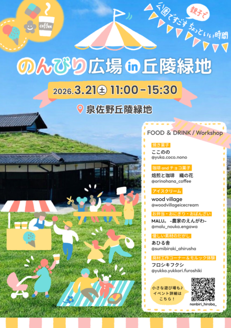 場 所:泉佐野丘陵緑地・パークセンター前芝生広場(雨天の場合はパークセンター内)